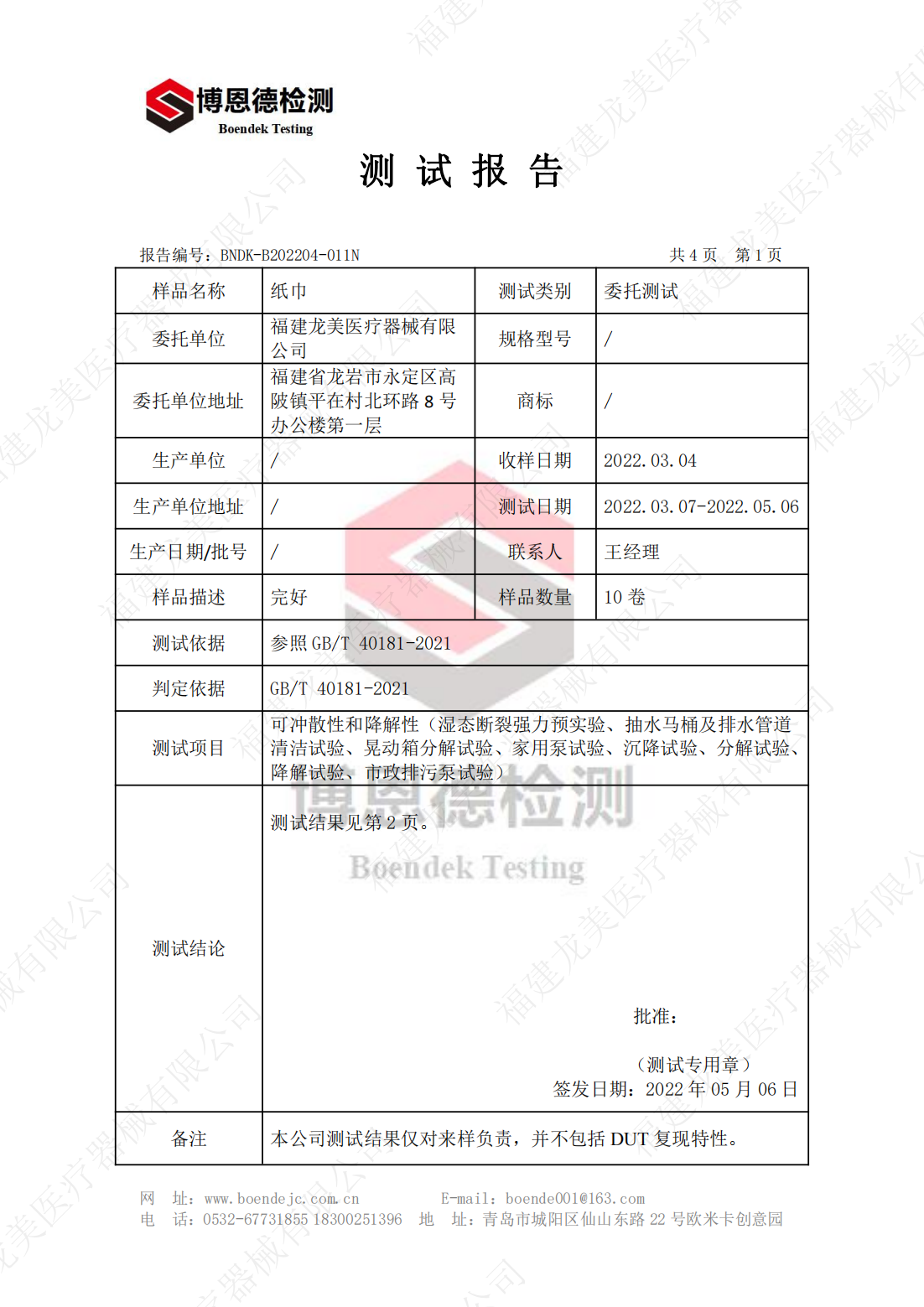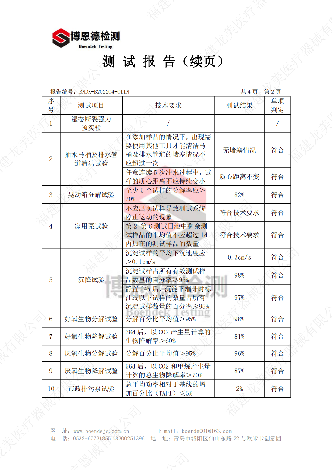 Flushability and Biodegradability Test Report