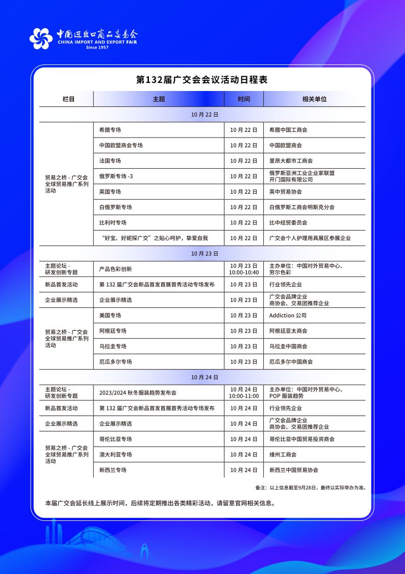 Calendario de actividades del 132o período de sesiones de la Feria de Cantón